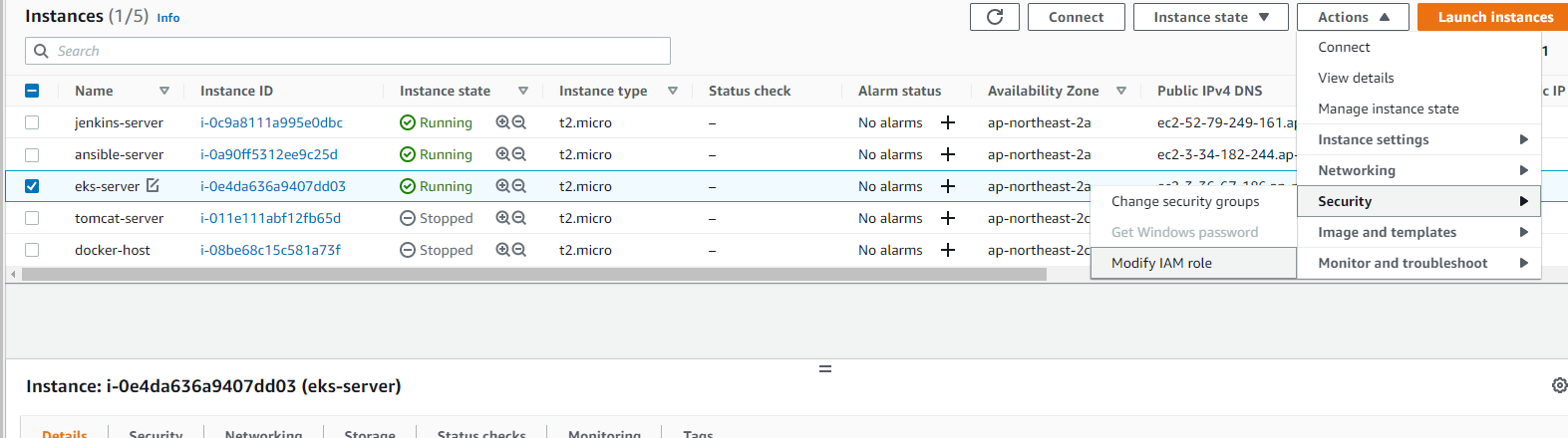 jenkins, ansible 서버를 켜고, 새로운 eks-server를 만든다.