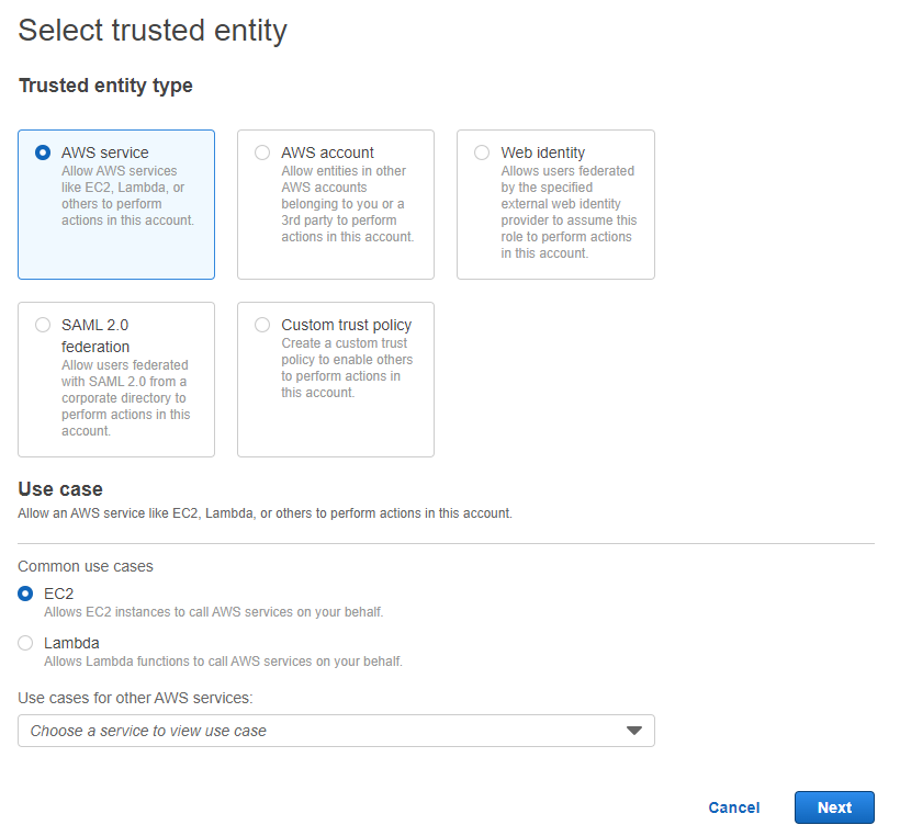 IAM에서 역할 생성한다.