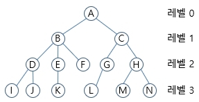 - 높이(height) : 트리의 최고 레벨, 이 트리의 높이는 3이다.