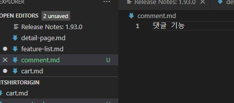 feature/comment 브랜치를 새로 생성한 뒤, comment.md 를 만든다.