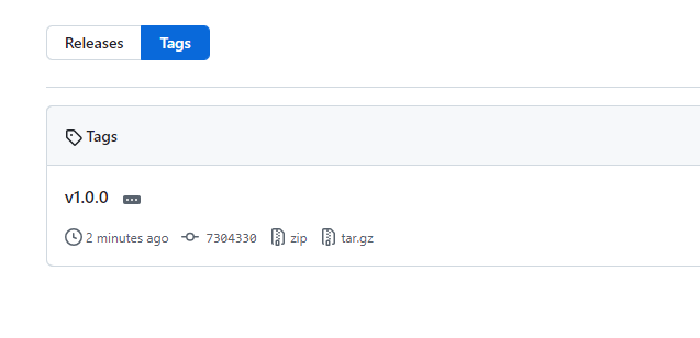 zip 아이콘을 클릭하면 해당 태그가 가리키는 버전을 압축 파일로 다운로드할 수 있다.