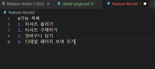 기존에 만들었던 feature-list.md에 텍스트를 추가하고, 커밋한다.