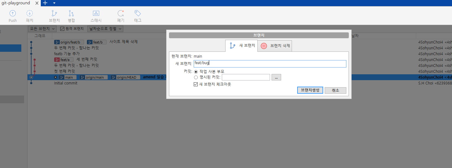 feat/bug의 내용을 푸시한다.
