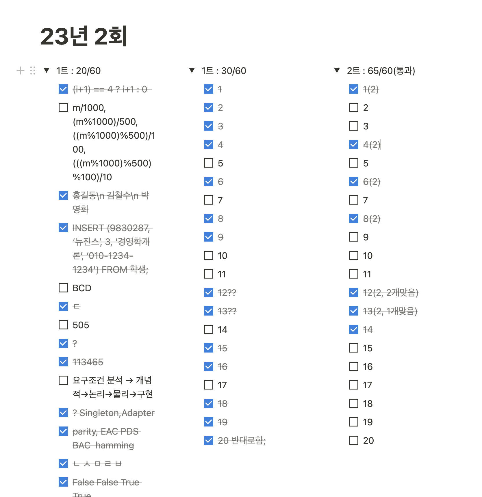 - 공부시간 부족 (물론 2회차는 그래봤자 2주전부터 공부함 ^^;)