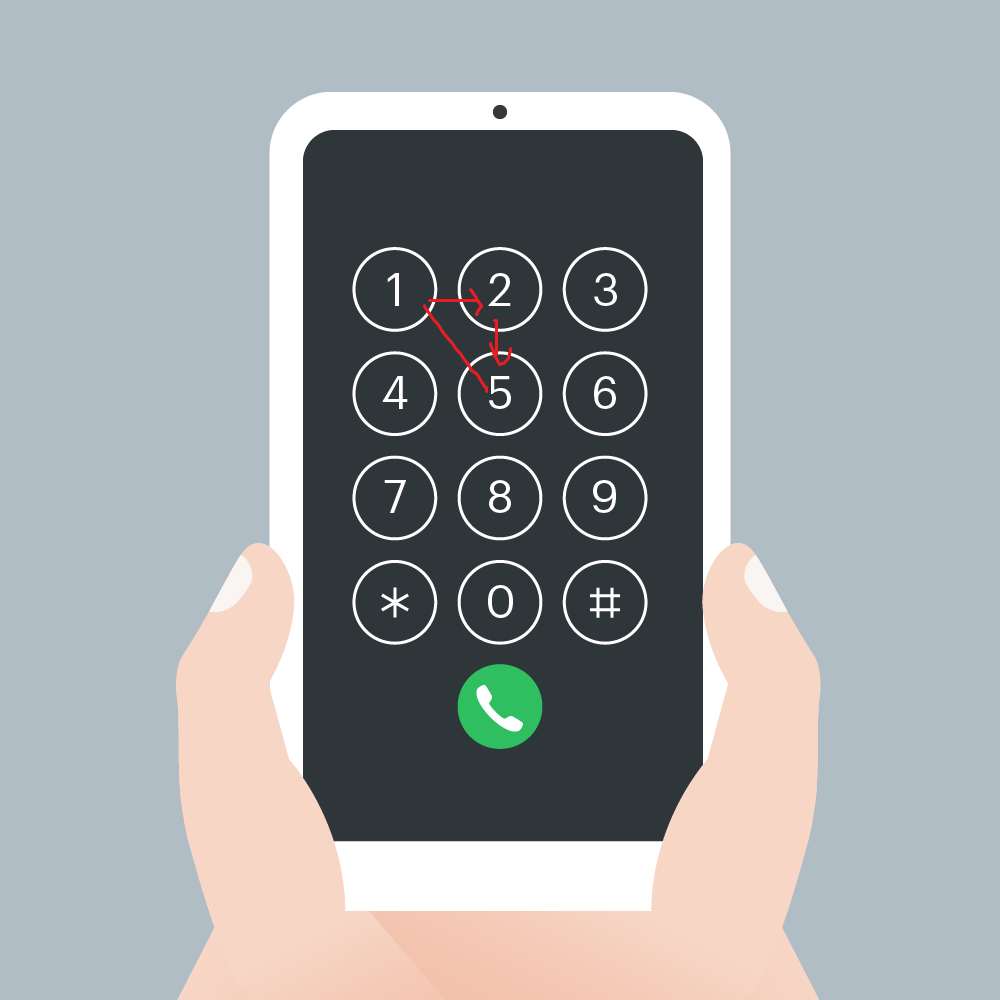 스마트폰 전화 키패드의 각 칸에 다음과 같이 숫자들이 적혀 있습니다.