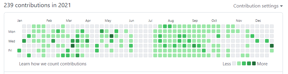 작년에는 뭣도 모르고 깃허브를 거의 방치했는데, 최근에서야 깃허브 관리의 중요성을 깨닫고 올 초부터 열심히 화단을 가꾸고 있다.