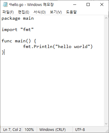 Println을 쳤을 때 자동으로 "fmt"가 import된다.
