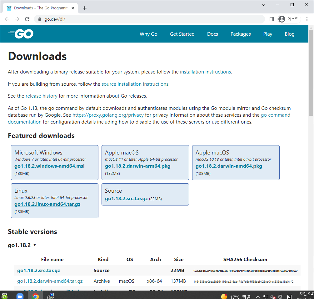 최신버전의 GO 설치