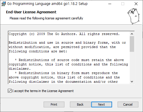 go version을 쳐봤을 때 버전이 나오면 설치 성공