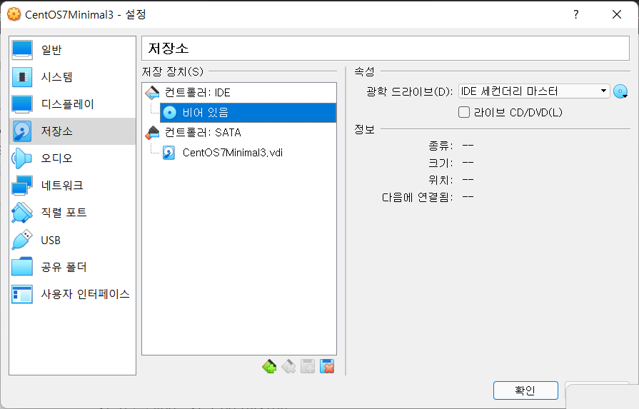 [저장소] 에서 컨트롤러 IDE에 mirror 사이트에서 저장했던 minimal iso 파일을 지정한다.