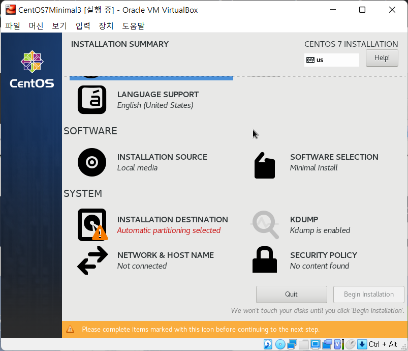CentOS Minimal을 설치 후 복제해서 설치하는 방식으로 진행하였다.