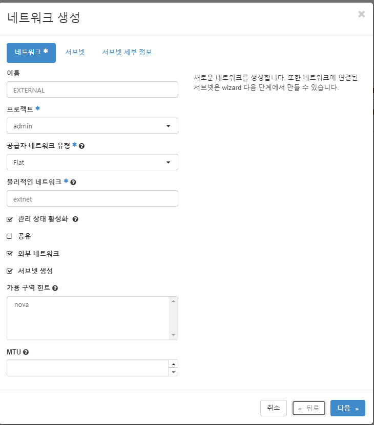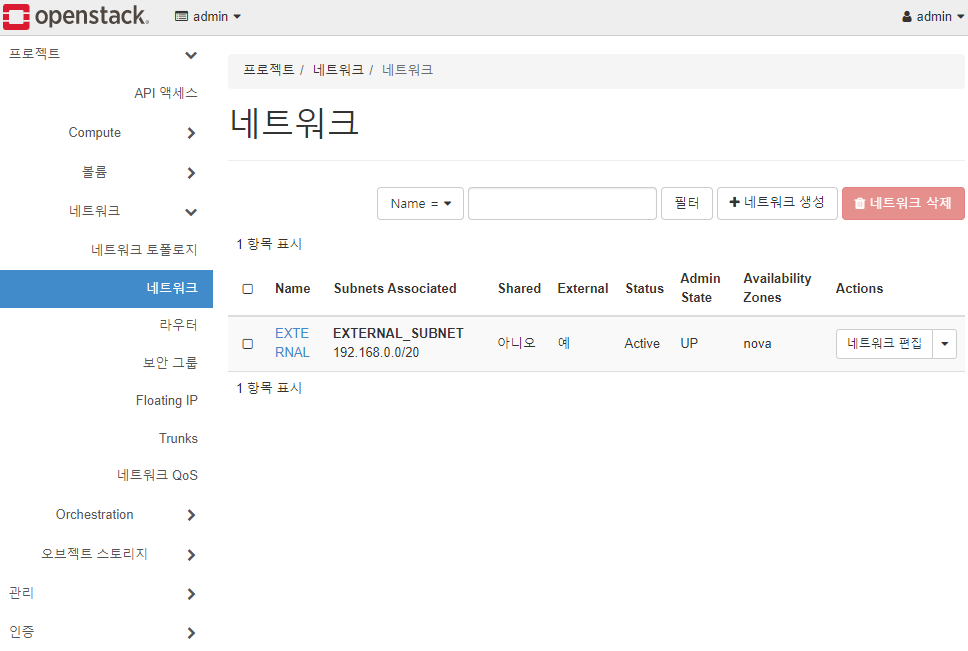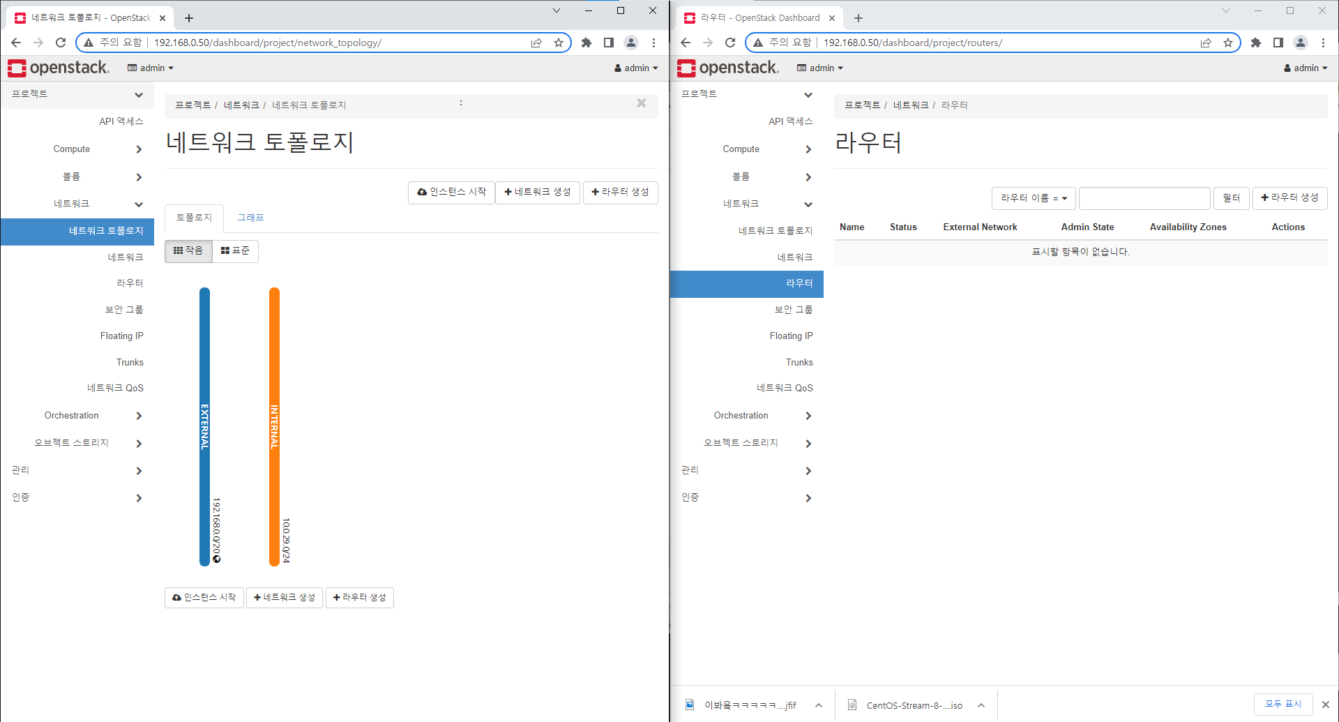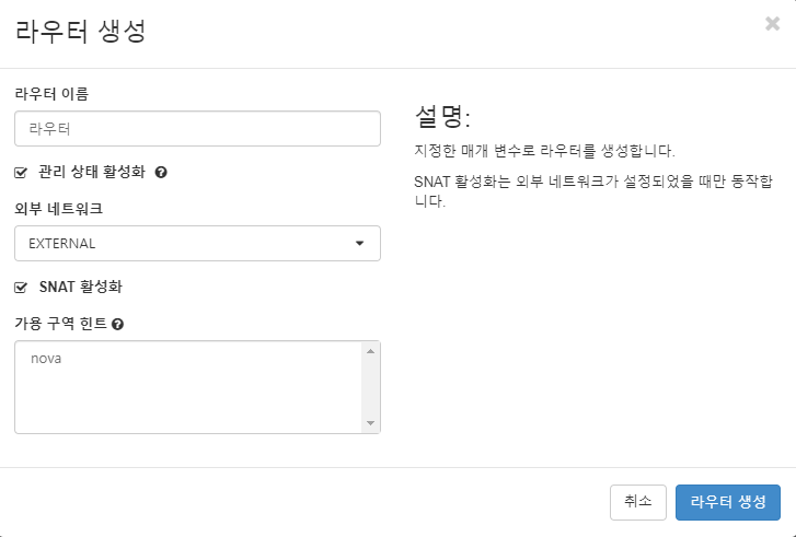 그리고 프로젝트 > 네트워크 > 라우터 에 들어가서 라우터를 생성한다