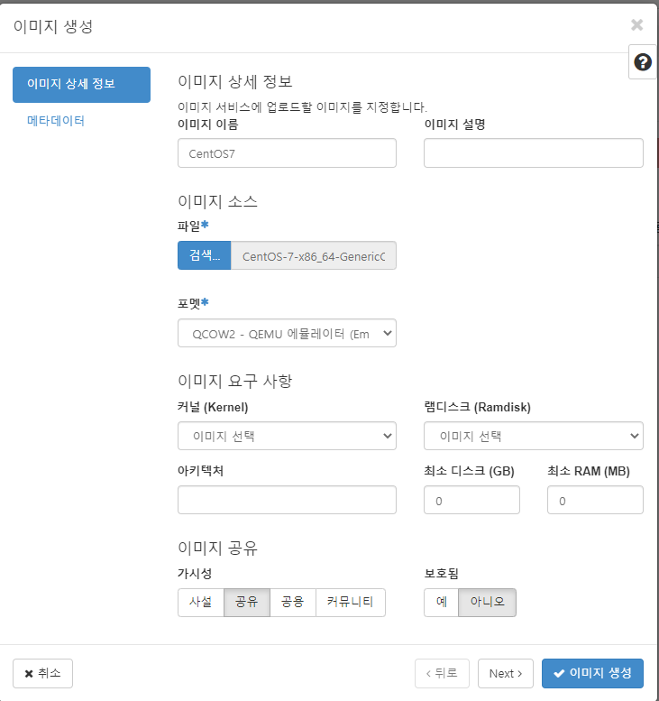 프로젝트 > Compute > 이미지