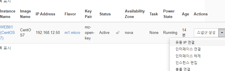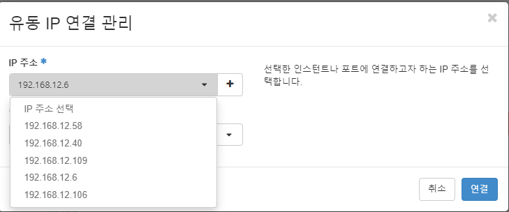다시 인스턴스로 나와서 [유동IP연결]을 클릭한다.