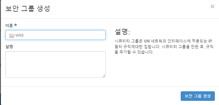 [보안 그룹 생성] 을 클릭한다.