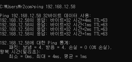 그 다음 ping을 보내본다. 네트워크 잘 접속된 것을 볼 수 있다.