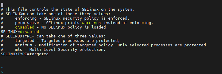 SELINUX=disabled