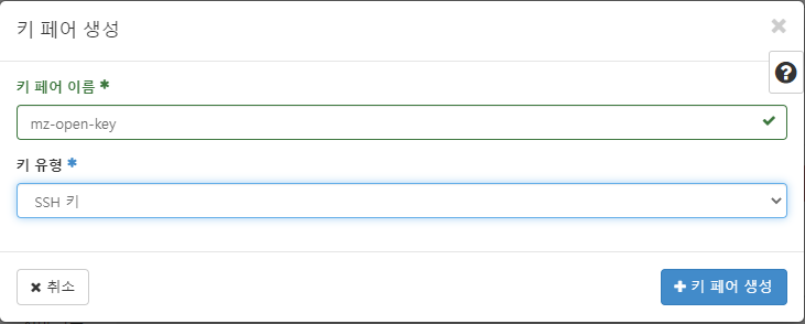 키 페어 탭으로 간 뒤, [키 페어 생성]을 클릭한다.