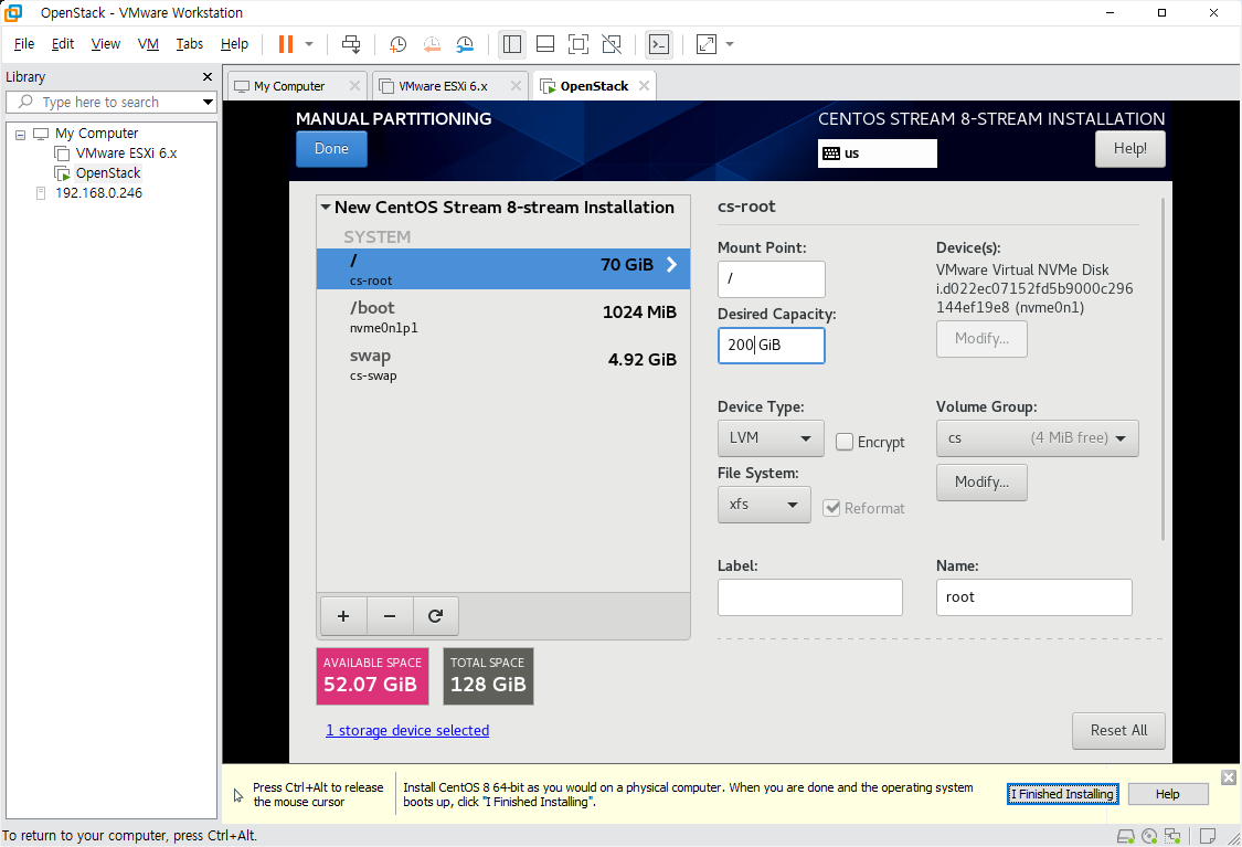 모든 설정을 마치면 Begin Installation을 시작한다.