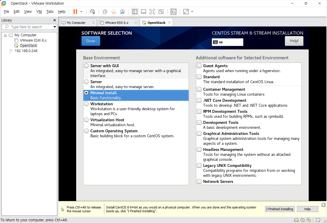Software Selection에서 왼쪽 칸을 Minimal Install로 선택한다.