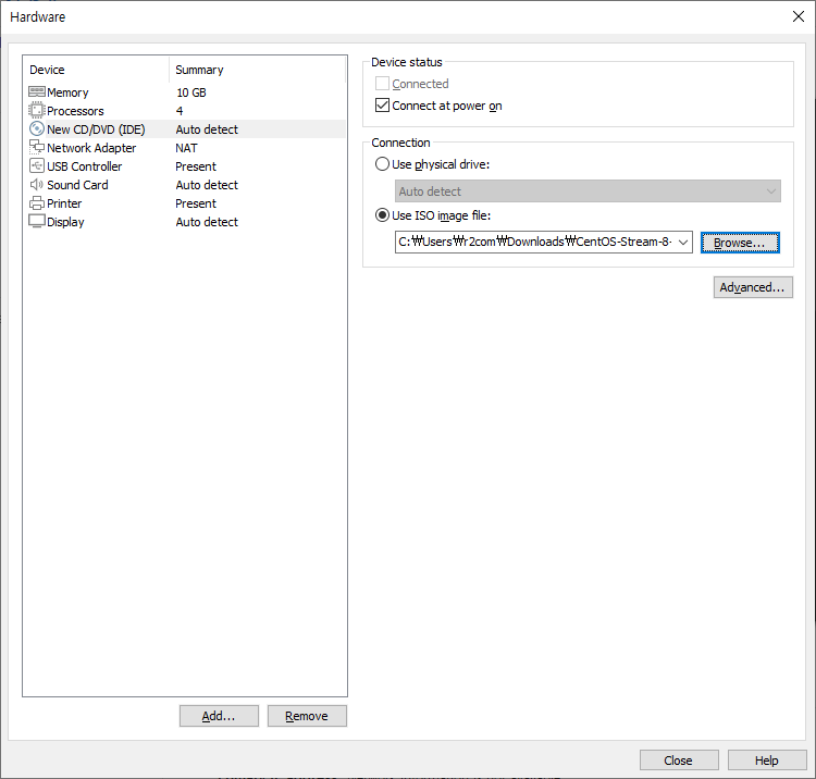 위 화살표 버튼을 눌러 CentOS7을 할당한다.