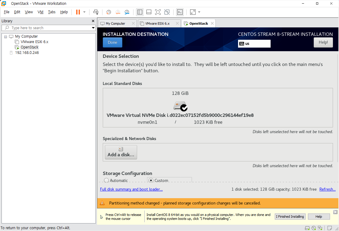 Storage configuration을 custom으로 바꾼다.