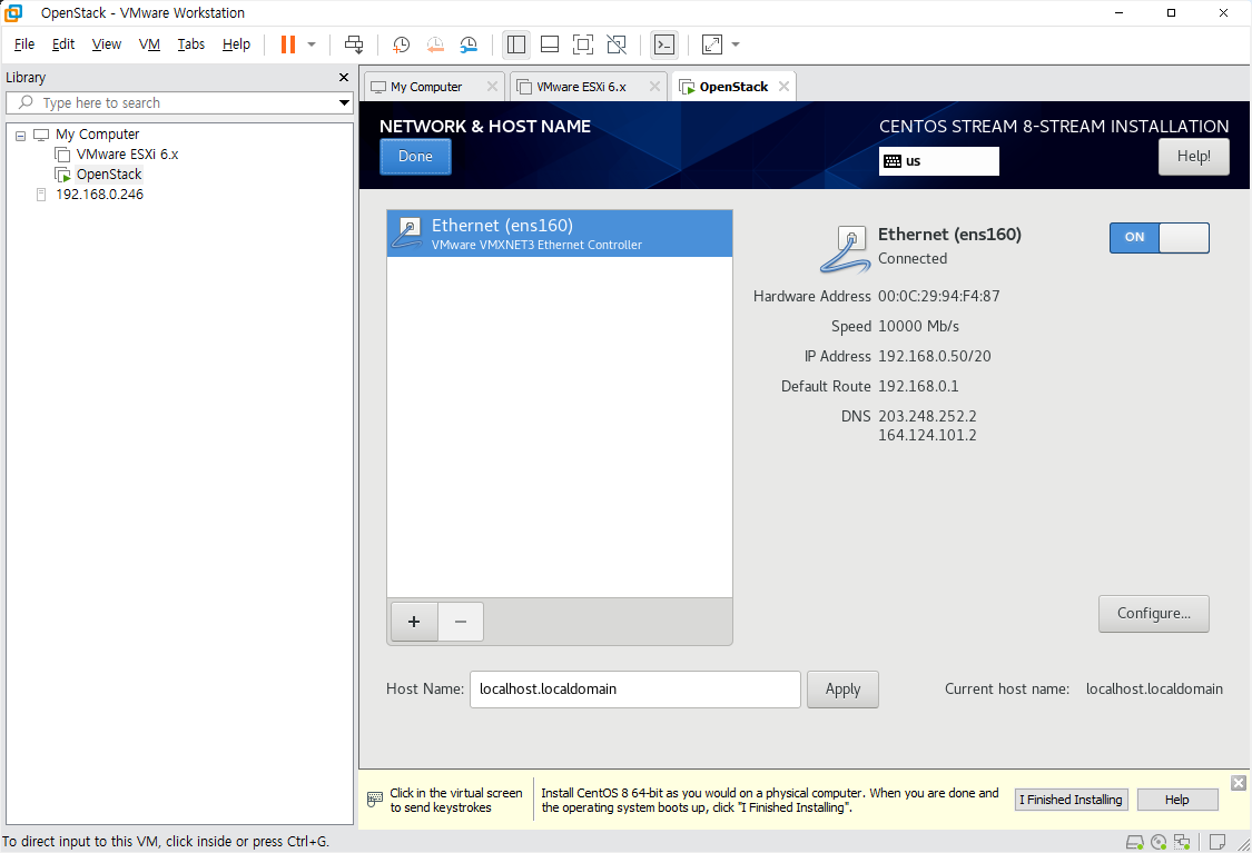 # vi /etc/sysconfig/network-scripts/ifcfg-ens160