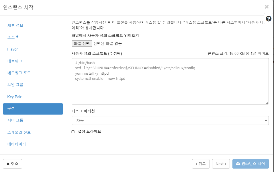 인스턴스 삭제시 볼륨 삭제 > 아니오 로 지정하여 이식성을 부여한다.
