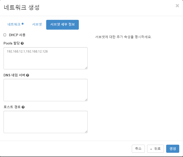 우측에 '네트워크 생성' 클릭한다.