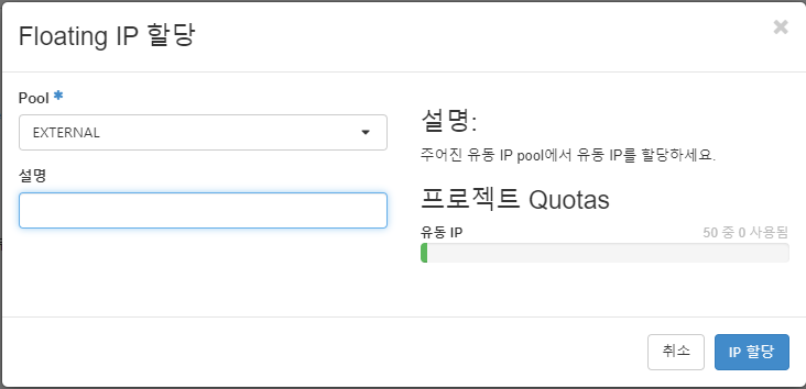 우측에 [프로젝트에 IP 할당]을 클릭한다.