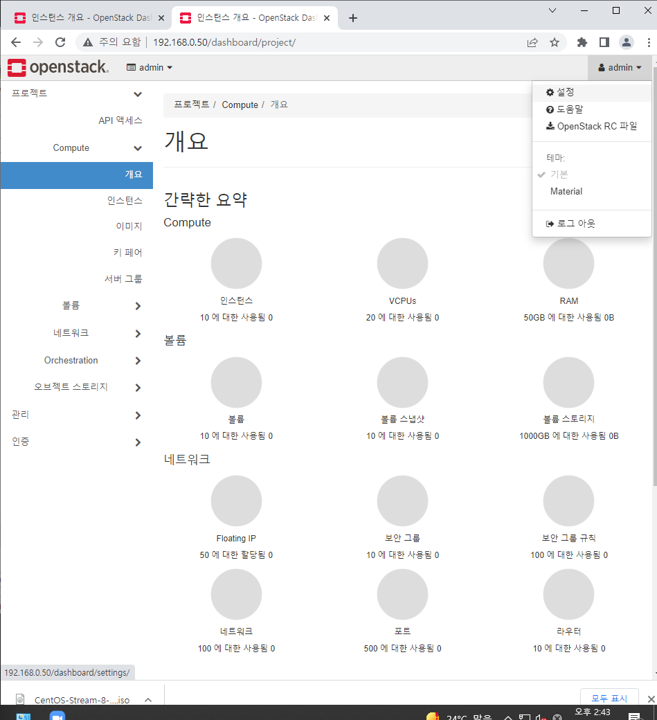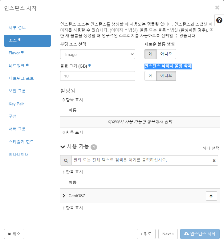 관리 > Compute > Flavor 로 들어간다