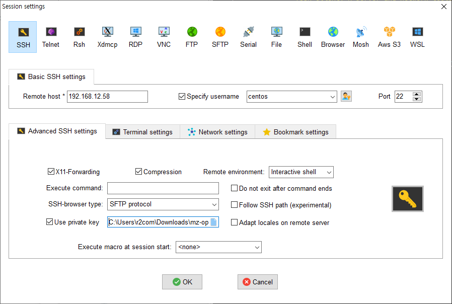 private key는 앞서 다운로드 받았던 pem파일로 지정한다.