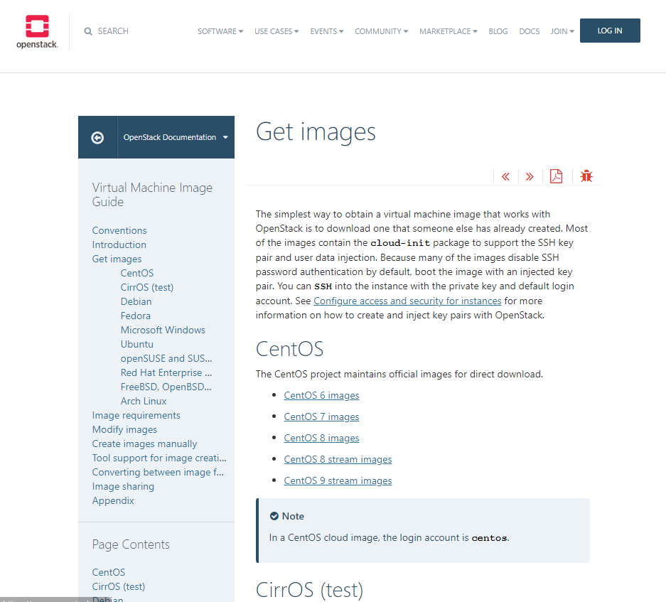 Get images The simplest way to obtain a virtual machine image that works with OpenStack is to download one that someone else has already created. Most of the images contain the cloud-init package to support the SSH key pair and user data injection. Because