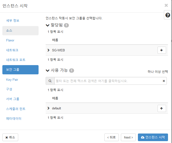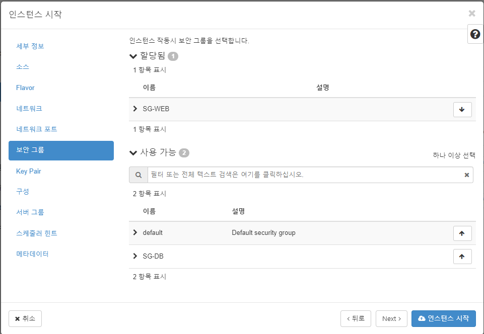 네트워크 > 보안 그룹 에서 보안 그룹을 추가한다