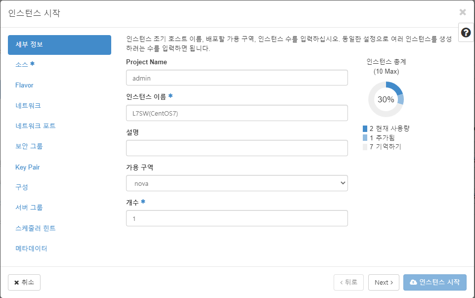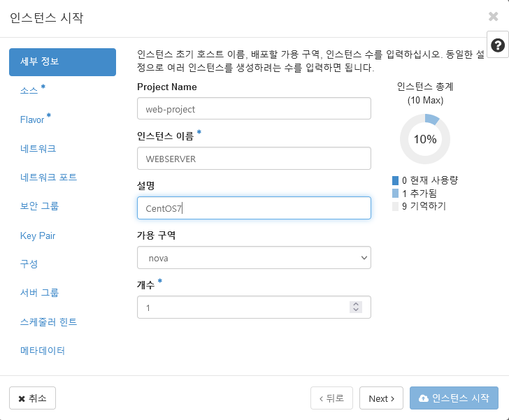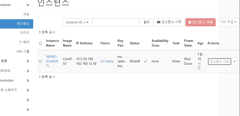 Compute > 인스턴스 로 들어가서 인스턴스를 생성한다.