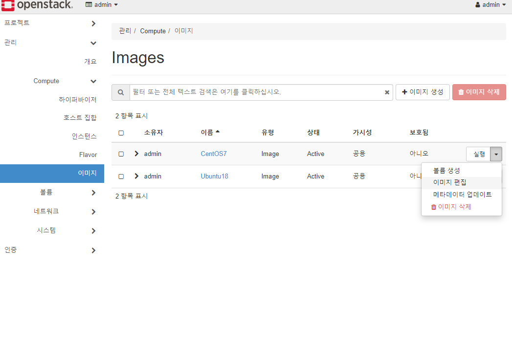 이미지 공유에 들어가서 CentOS7과 Ubuntu를 공유 -> 공용 으로 바꾼다.