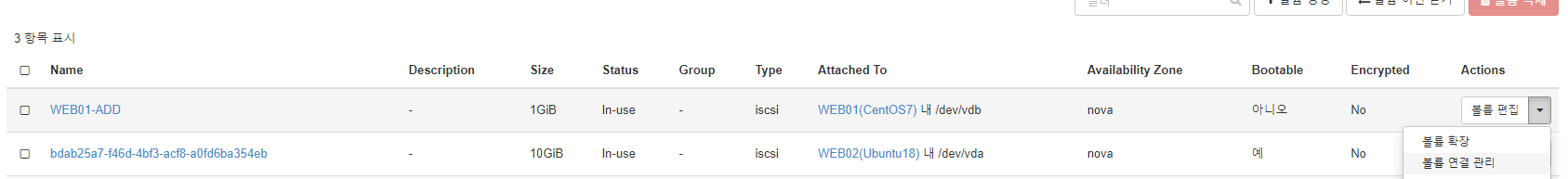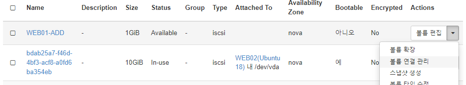 방금 만든 WEB01-ADD에서 [볼륨 연결 관리]를 클릭한다.