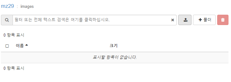 images를 클릭한 뒤, [+폴더] 좌측의 업로드 버튼을 눌러 이미지를 업로드한다