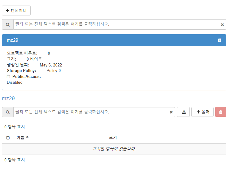 오브젝트 스토리지 > 컨테이너 로 들어간다.