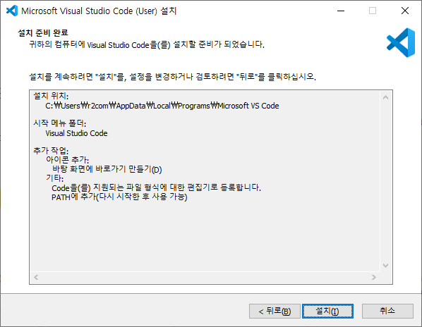 기본 설정 값으로 지정한 뒤 설치버튼을 누른다.