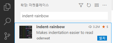 좌측에 박스 모양 탭을 누른 뒤, python을 서치하여 위 세개를 install한다.