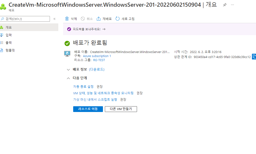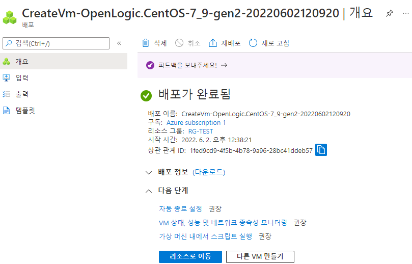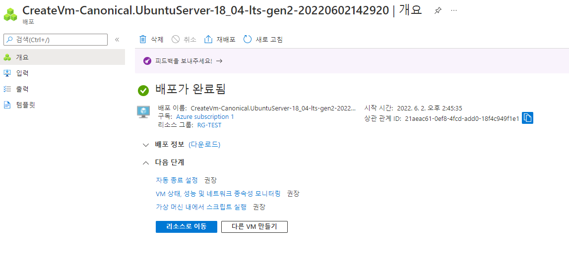 RG-TEST 클릭 - 상단의 [리소스 그룹 삭제] 클릭,