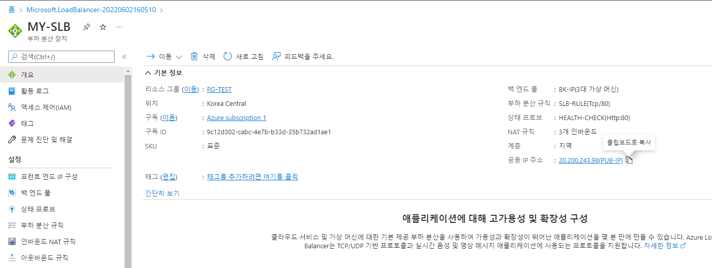 좌측 탭의 [부하 분산 장치]를 누른다.
