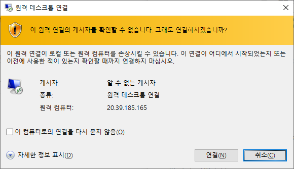 아까 입력했던 ID, PW를 입력한 뒤, [연결하시겠습니까?] 에 [예]를 누른다.