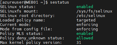 SELinux는 활성화 된 상태이므로 중지시킨다.