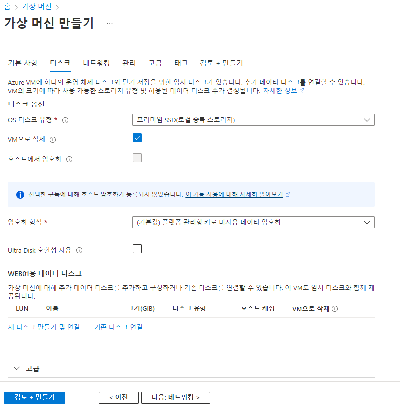 WEB01, WEB02와 달리, [사용자 지정 데이터]에 명령어를 입력하지 않는다.