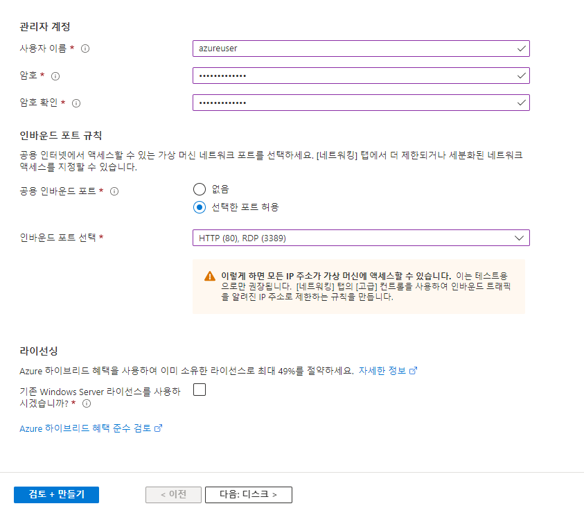 유효성 검사를 통과하고 나면 확인하고 [만들기] 버튼을 누른다.