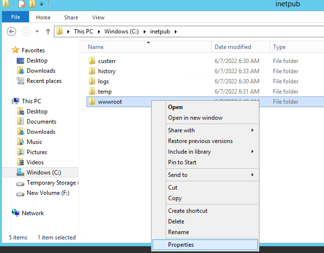 wwwroot 폴더 오른쪽 마우스 클릭 - properties 클릭