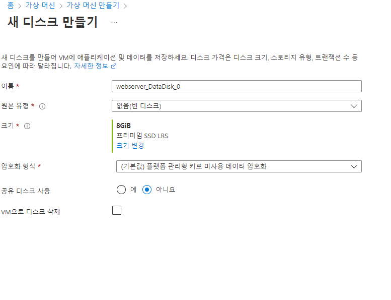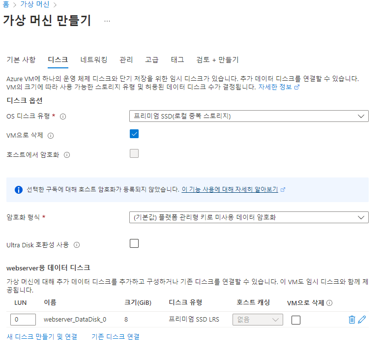 가용성 옵션 - 가용성 영역 - zone1 으로 설정한다.