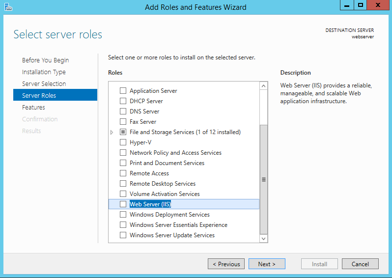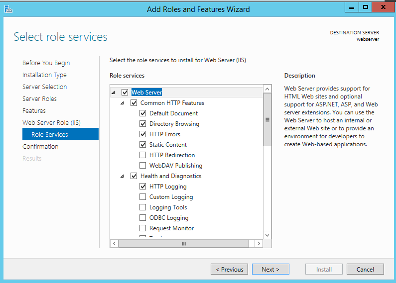 Server Roles - Web Server(IIS)를 클릭하면 - 우측 창이 뜬다.